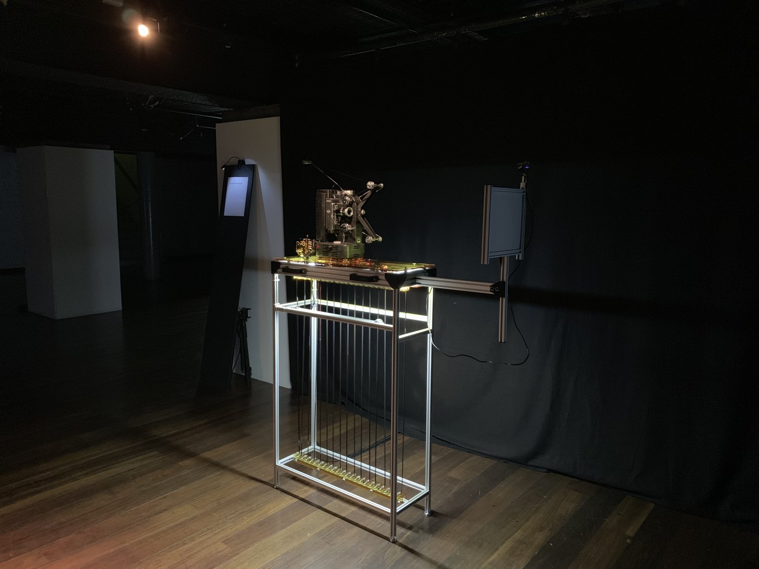 The installation is activated by a motion detector that initiates all the devices, the original movie can be viewed.