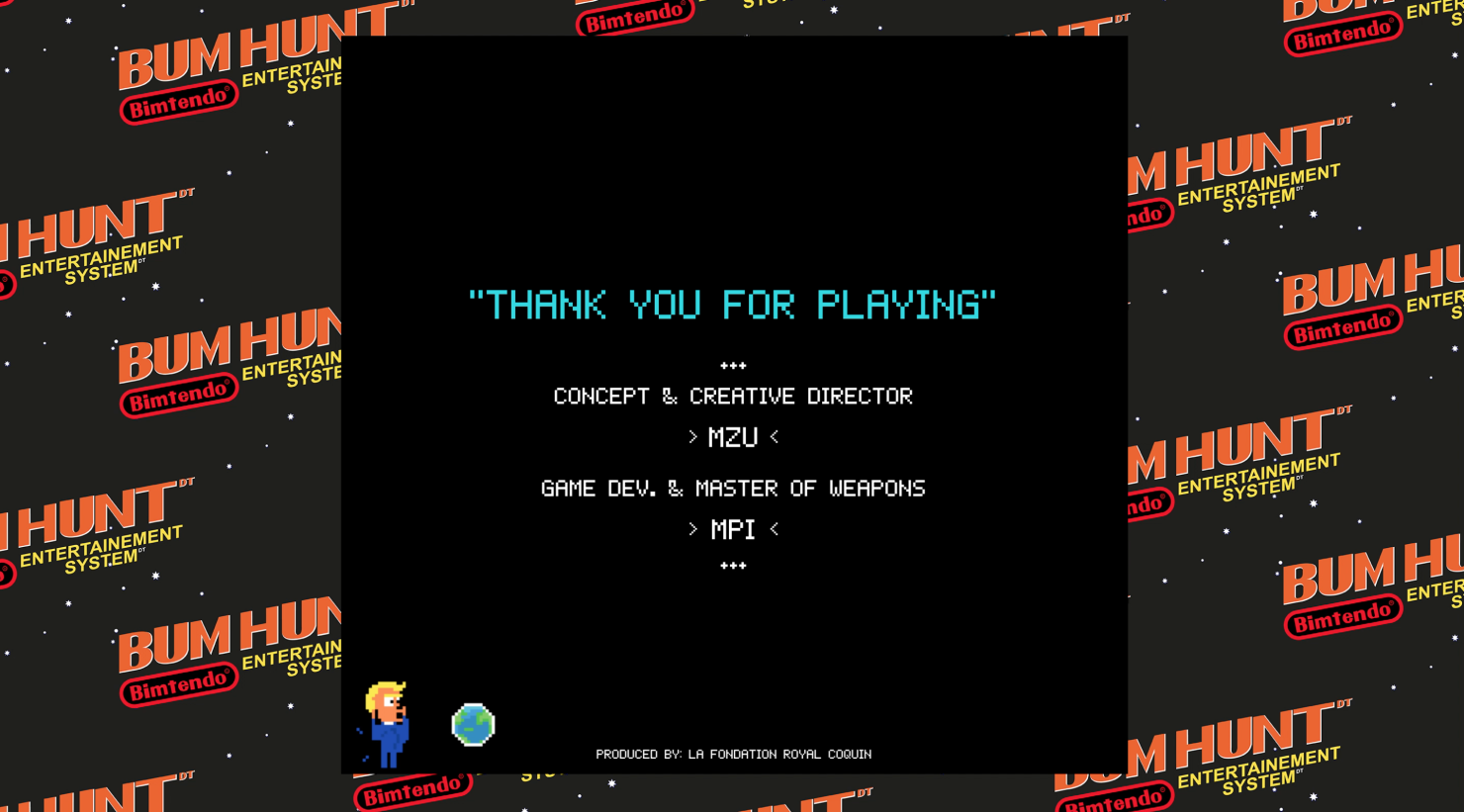 The three main protagonists in this online game, Donald Trump, Vladimir Putin and Kim Jong-un are joined by a fourth : us, the “Bimtendo” player.