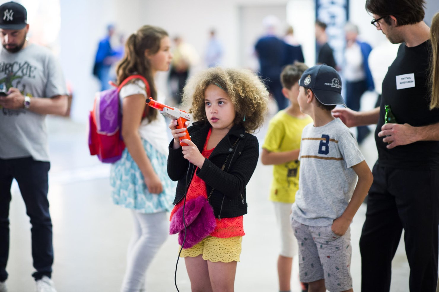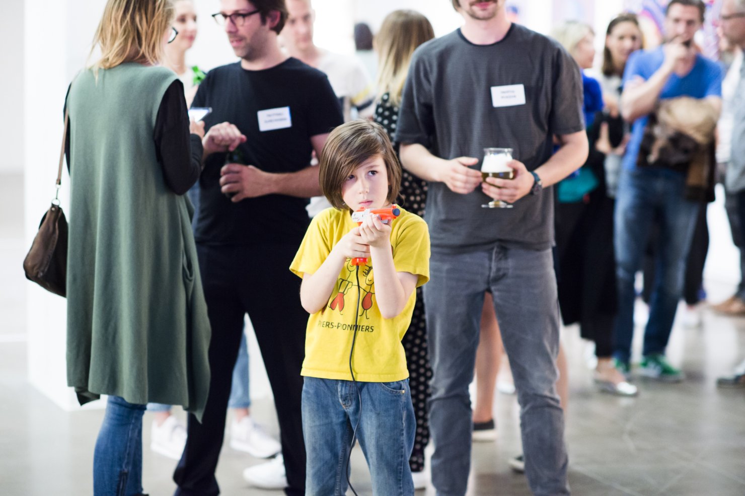 In a world of GIFS, twitter and social media, the power of satirical humor and simplicity go a long way. We are back to the basics with the original shooting game : consoles, moving targets, and collecting points. The scene is set and the self-derisive humor spares none, neither the art-world connoisseur, nor the pop-idol consumer, nor children and adults who love to play. All are invited to be amused and slightly overwhelmed by the sight of two fictitious frenemies on a wrecking b... Horse, swinging through the screen as the game comes to a close.
