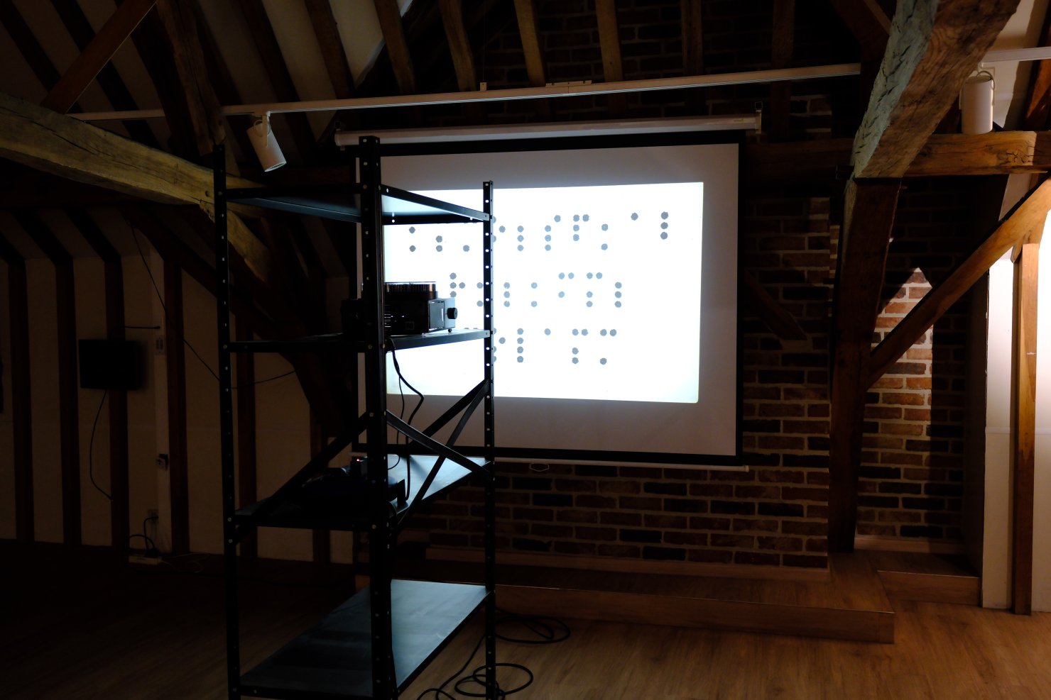 touch, is here rendered purely visual. Its dots are enlarged, projected, and
