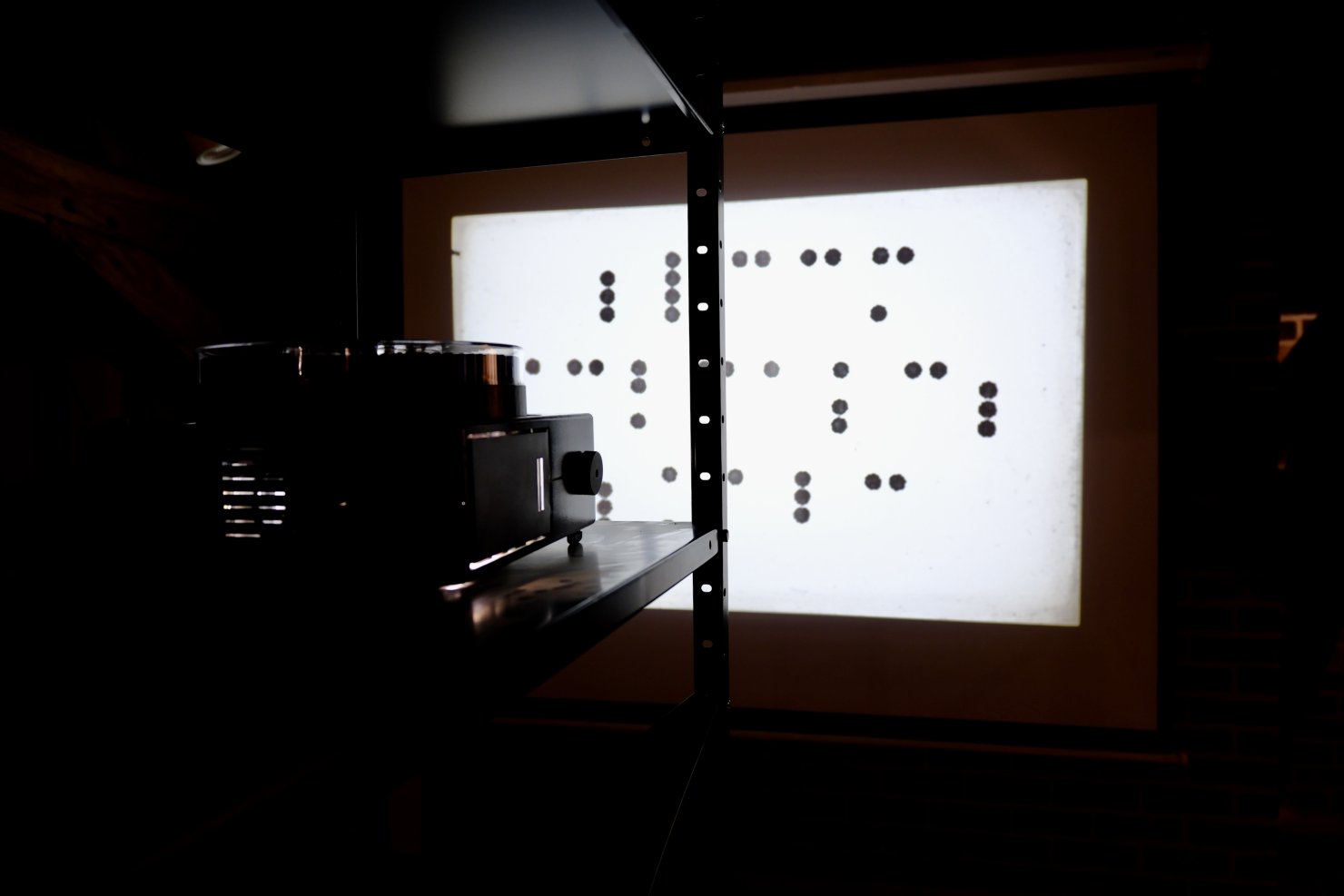 The use of an analog slide projector introduces another layer of mediation. Once a