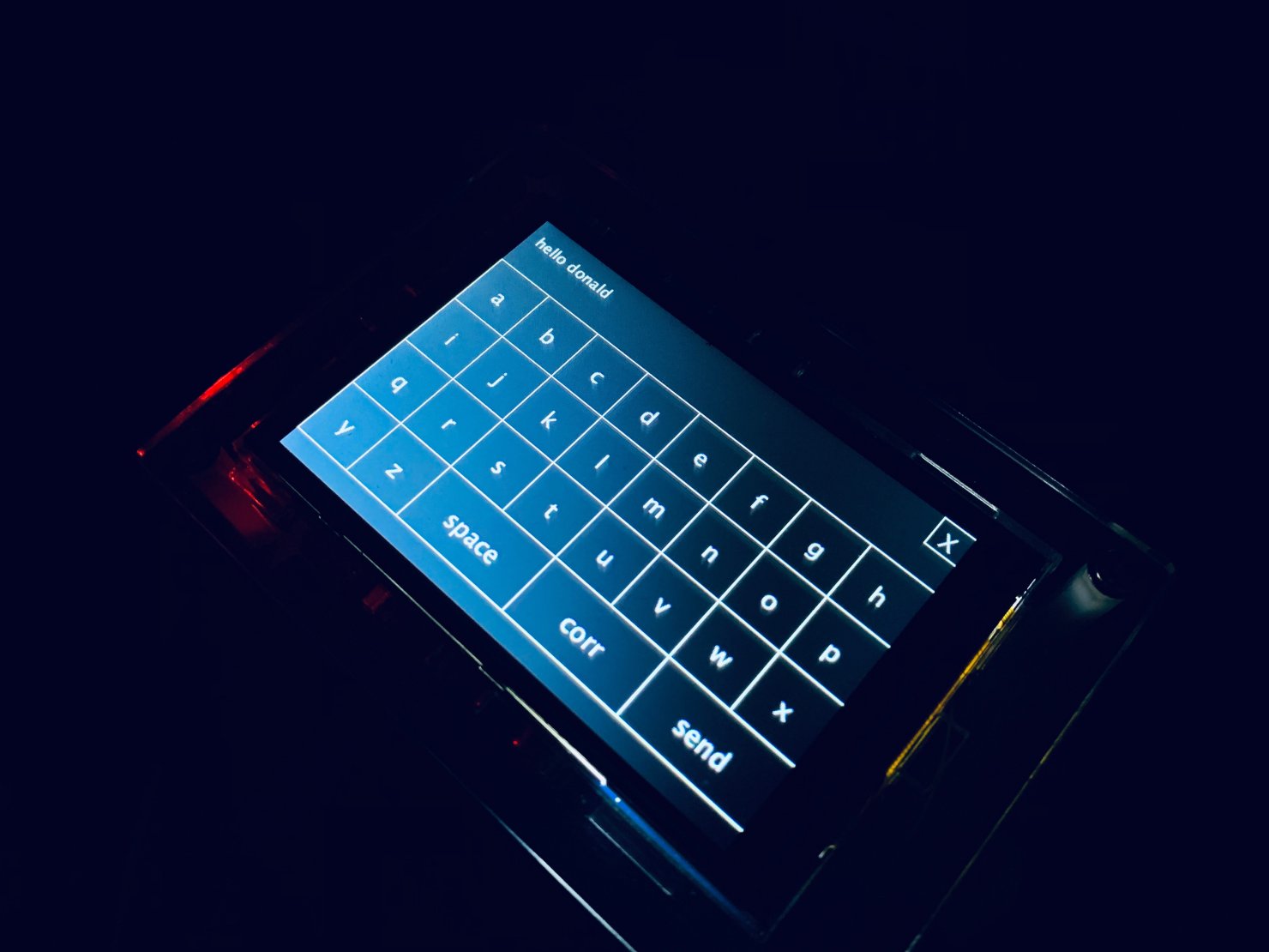 The user writes a message with the help of a touch screen display wired on a raspberry Pi.