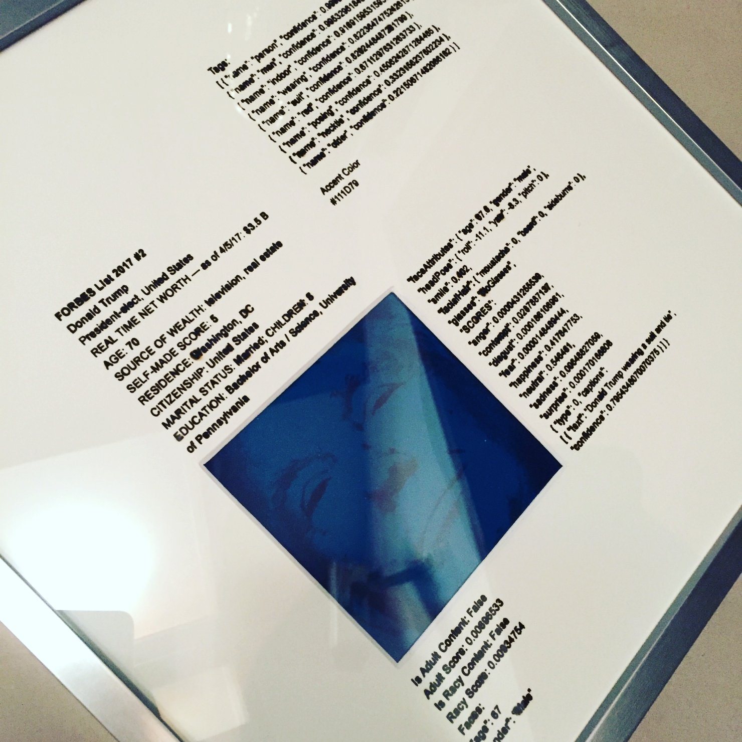 Downstream of the work of programming, analysis and selection of the theme, the artist assembles the various layers of information, the superposition of the layers allows, through its materialization ; The Visualization of the data provided by the Artificial Intelligence and their comparisons.
