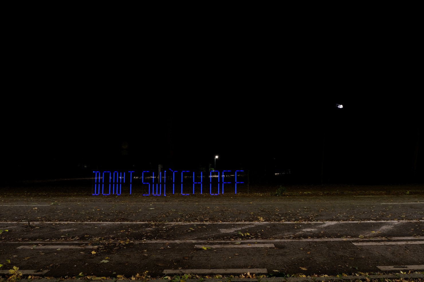 "Idiomas" freezes words in space for a short moment. In theory, only a long photographic take would allow the word to be revealed, in other words the device forces the receiver (the observer) to capture via his phone or a camera the data that is displayed to see the result.
