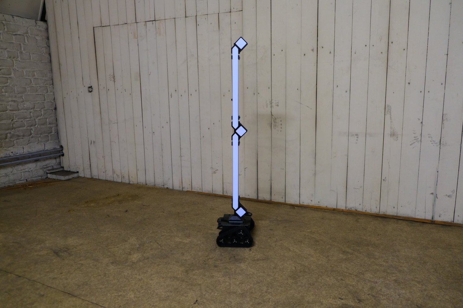 [ \i.ˈðjo.mas\ ] is a light installation driven by an remote controlled Tank surmounted by a custom led device, sketching the shape of a 7 segments display.